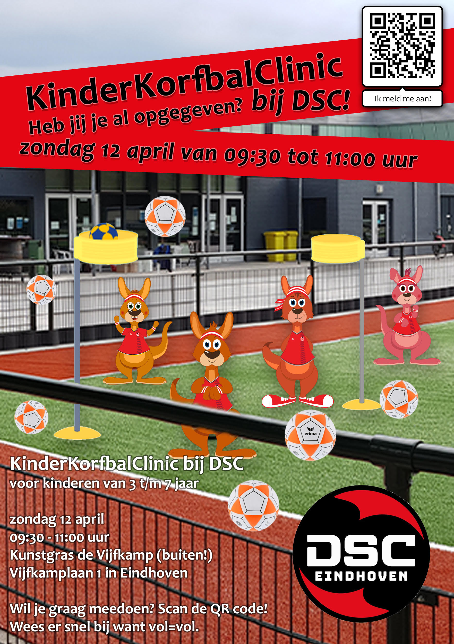 Op zondag 12 april organiseren wij een Kinder Korfbal Clinic voor de jeugd van 3 t/m 7 jaar.