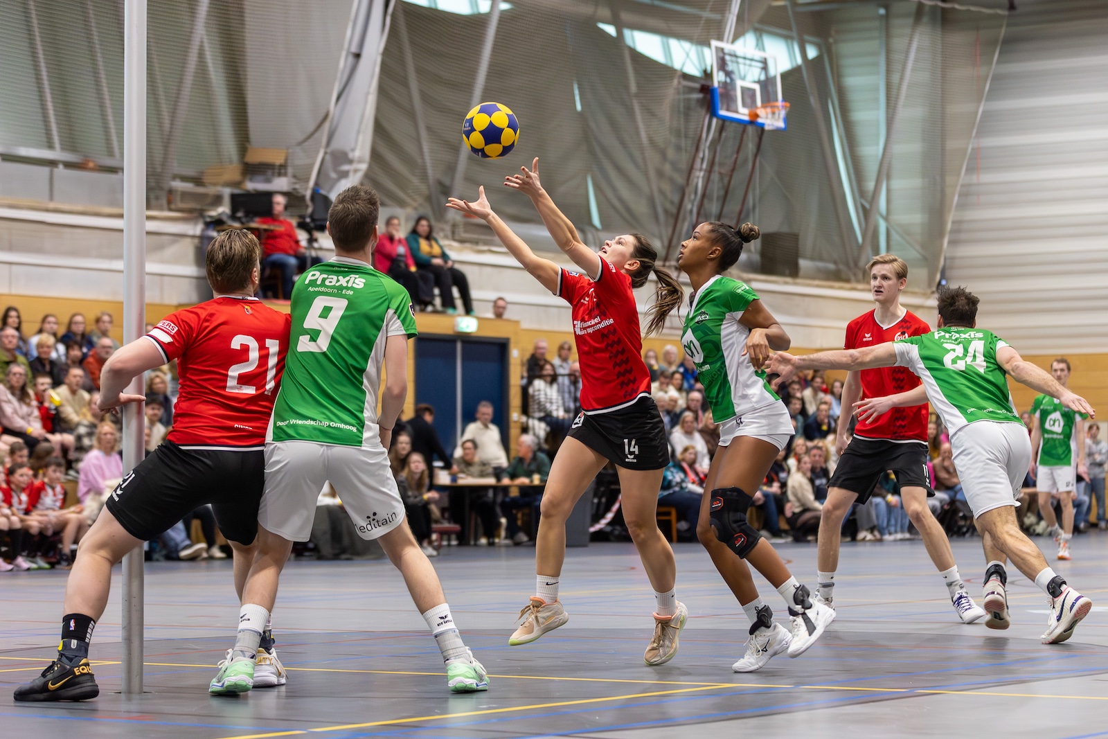 DSC komt er in deze fase niet goed uit. Heeft moeite in aanvallend opzicht. En DVO loopt uit naar 4 – 10. Een minuut of acht voor rust pakt DSC het toch weer op. Een run van vier scores brengt DSC terug in de wedstrijd. 8 – 10. Die run is knap. Maar DVO mag toch weer ontsnappen. 9 – 13. Rust. Ik tel aan DSC-zijde zo’n zeven gemiste doorloopballen en of kleine kansen. Categorie jezelf tekortdoen. Je eigen tegenstander zijn. Verdammt.